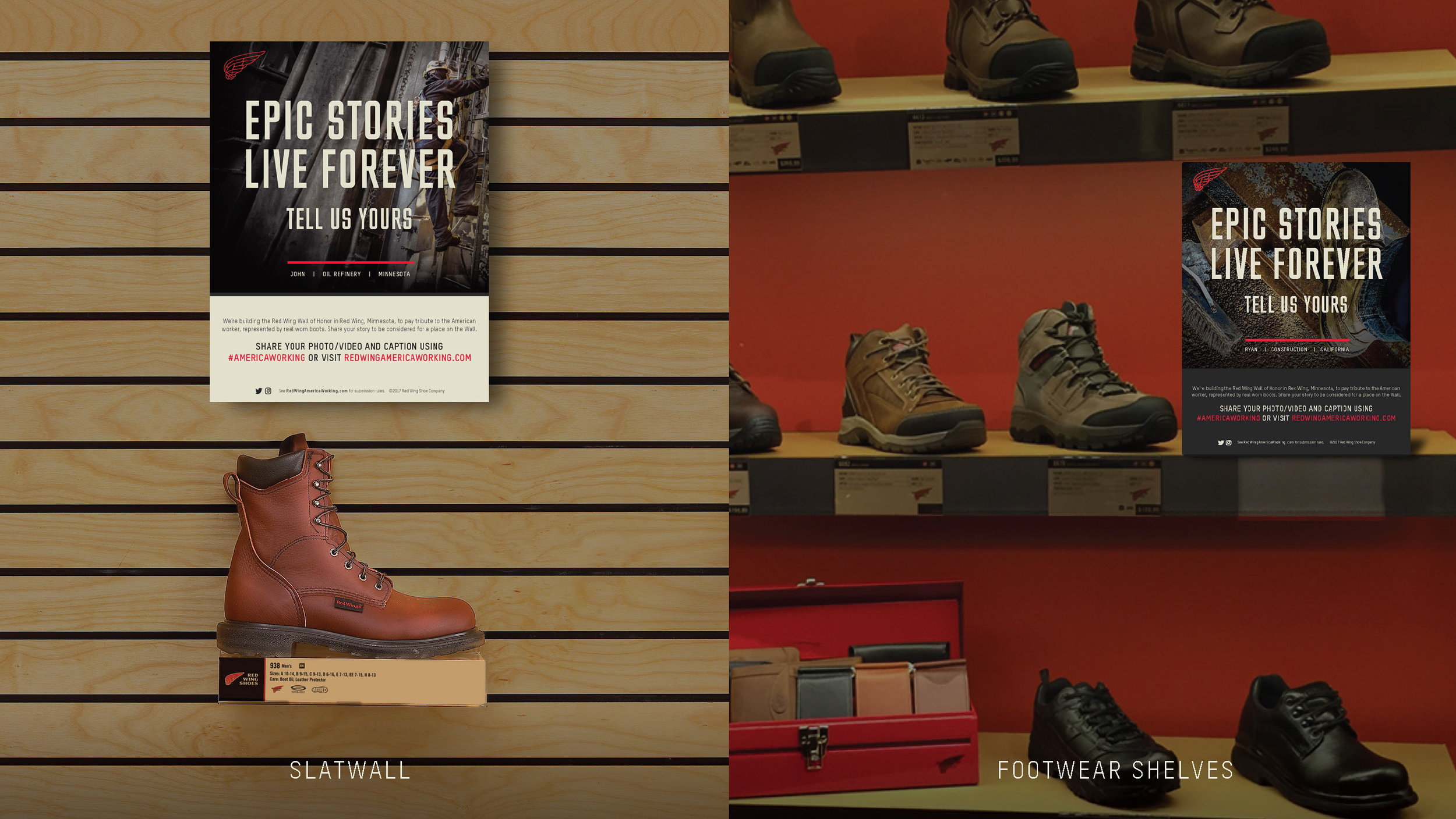 Red Wing Shoes has a strong legacy with tradespeople. They are the work boot of choice, lasting through extreme wear and conditions. Red Wing Shoes wanted a way to honor this legacy, and thank the men and women who have built America. The Wall of Honor became a lasting, physical tribute to them, with their worn Red Wing boots carrying their stories, standing tall in Red Wing, MN, not too far from the factory that makes them. For its inaugural year, we not only created the exhibit, but also created a companion website, social, digital and in-store campaigns.